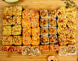 Рыбная Рыба, Цезарь запеченный, Темпура сяке, Хот Кисс, Кавай лосось. (40 шт.)